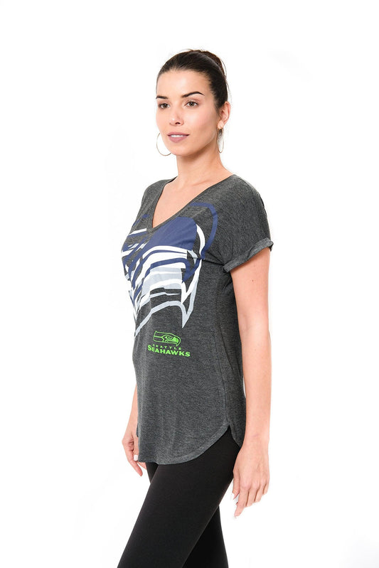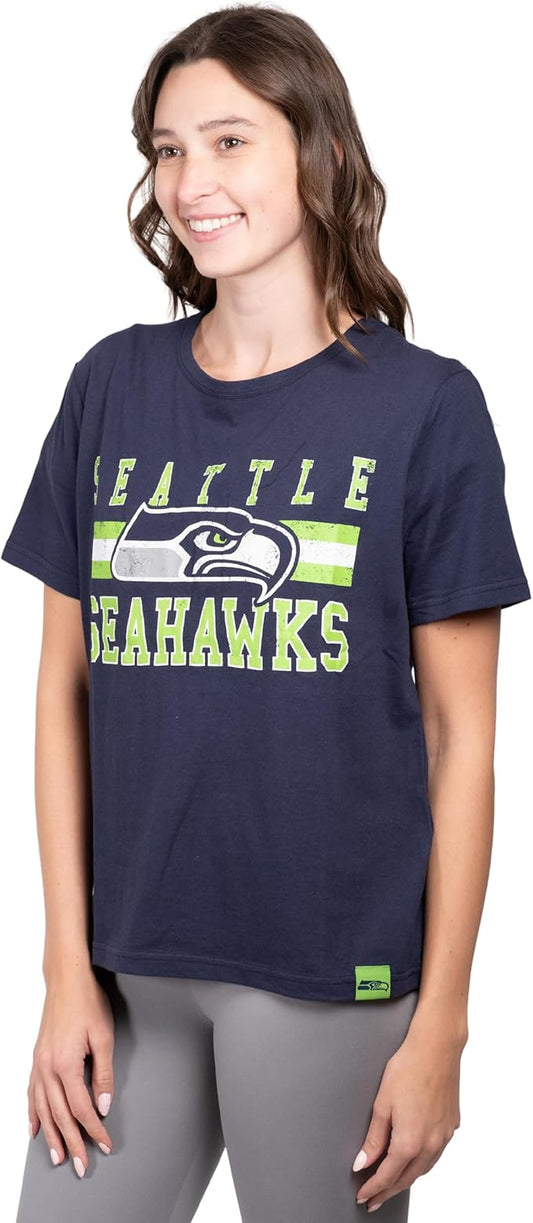 Ultra Game NFL Official Women's Distressed Graphics Super Soft Crew Neck T-Shirt, Seattle Seahawks, Team Color|Seattle Seahawks