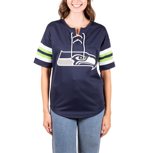 Ultra Game NFL Seattle Seahawks Womens Standard Lace Up Tee Shirt Penalty Box|Seattle Seahawks