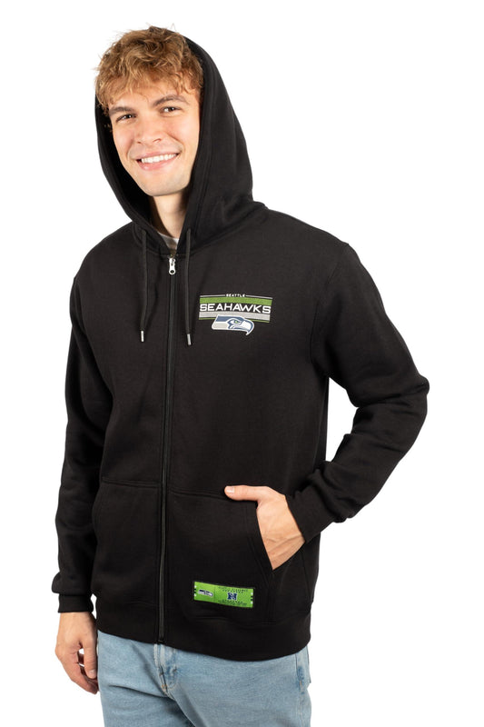 Ultra Game NFL Official Adults Super Soft Supreme Full Zip Hoodie Sweatshirt Jacket - Warm Polyester Blend - Unisex, Seattle Seahawks, Black|Seattle Seahawks