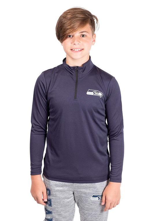 Ultra Game NFL Official Youth Super Soft Quarter Zip Long Sleeve T-Shirt Seattle Seahawks|Seattle Seahawks