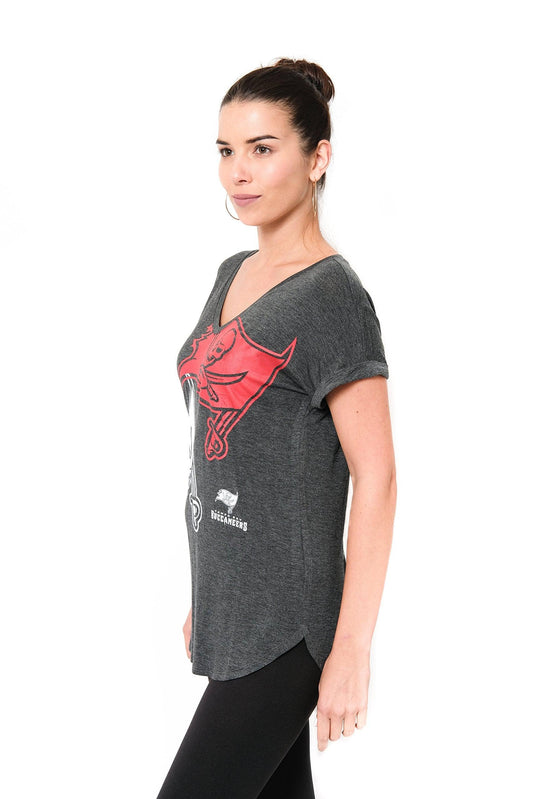 Ultra Game NFL Tampa Bay Buccaneers Official Women's Super Soft Modal Vintage V-Neck T-Shirt|Tampa Bay Buccaneers