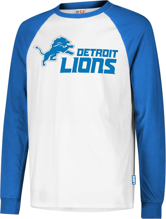 Ultra Game NFL Official Adults Super Soft Raglan Baseball Long Sleeve T-Shirt, Detroit Lions, White|Detroit Lions