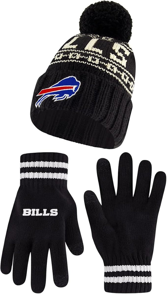 NFL Official Adults Super Soft Cable Knit Winter Beanie Knit Hat with Extra Warm Touch Screen Gloves|Buffalo Bills