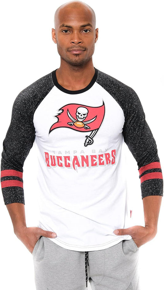 Ultra Game NFL Official Adults Super Soft Raglan Baseball Long Sleeve T-Shirt - Unisex, Tampa Bay Buccaneers, White| Tampa Bay Buccaneers