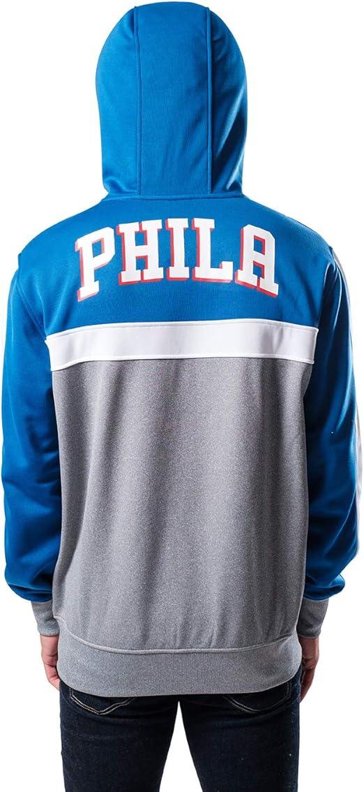 Ultra Game NBA Official Men’s Contrast Back Cut Full Zip Hoodie Sweatshirt - Unisex, Philadelphia 76ers, Team Color|Philadelphia 76ers