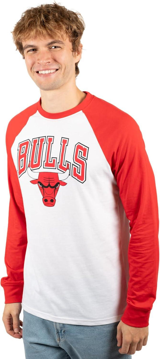 Ultra Game NBA Official Men’s Super Soft Raglan Baseball T-Shirt - Unisex, Chicago Bulls, Team Color|Chicago Bulls