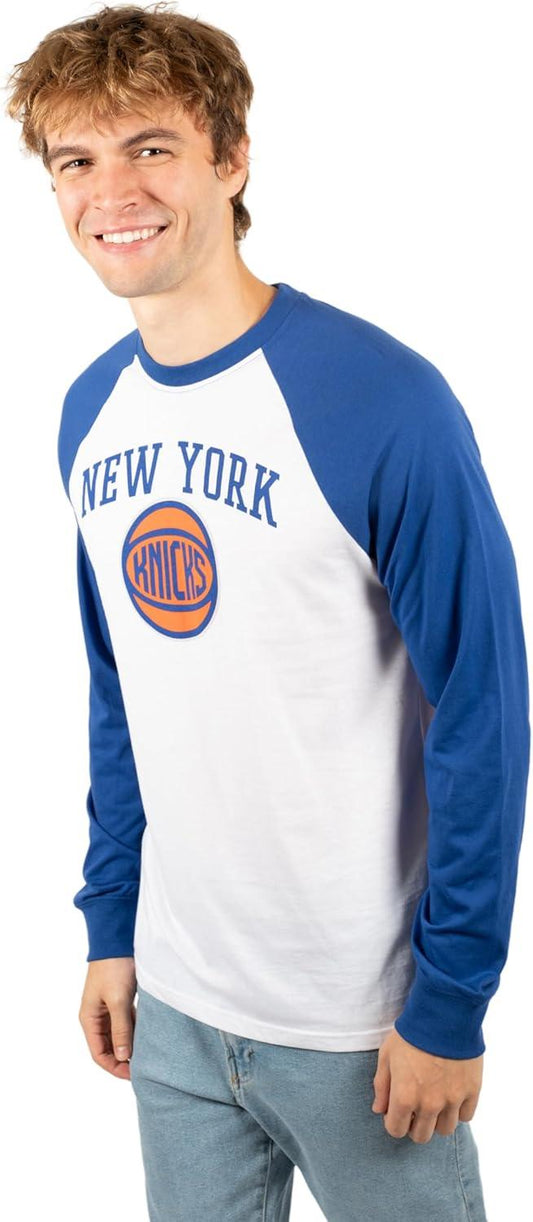 Ultra Game NBA Official Men’s Super Soft Raglan Baseball T-Shirt - Unisex, New York Knicks, Team Color|New York Knicks