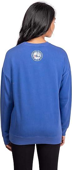 Ultra Game NBA Official Women's Extra Soft Fleece Distressed Oversized Pullover Sweatshirt, Philadelphia 76ers, Team Color|Philadelphia 76ers