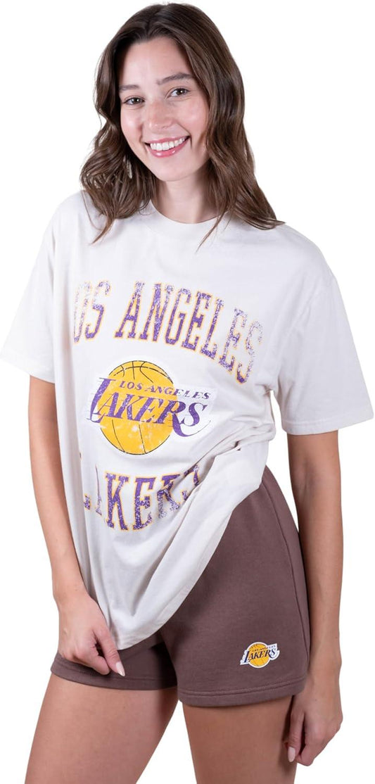 Ultra Game NBA Official Women's Super Soft T-Shirt & Short Set, Los Angeles Lakers, White|Los Angeles Lakers