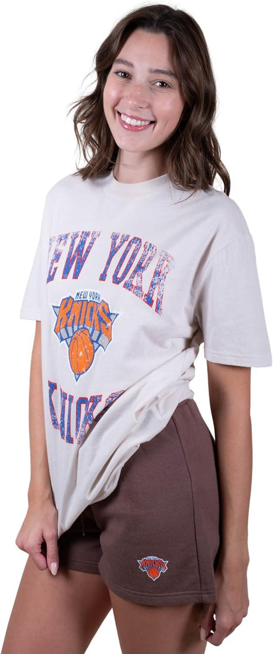 Ultra Game NBA Official Women's Super Soft T-Shirt & Short Set, New York Knicks, White|New York Knicks