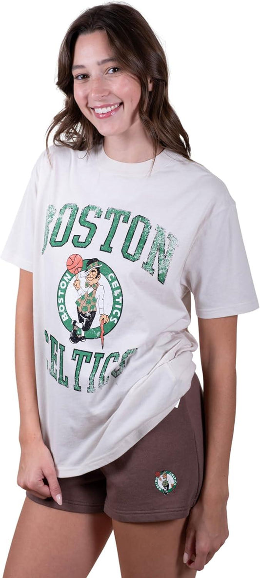 Ultra Game NBA Official Women's Super Soft T-Shirt & Short Set, Boston Celtics, White|Boston Celtics