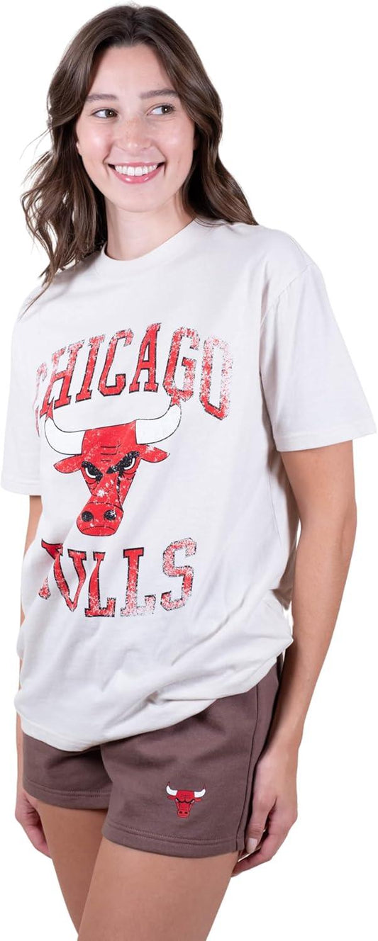 Ultra Game NBA Official Women's Super Soft T-Shirt & Short Set, Chicago Bulls, White|Chicago Bulls