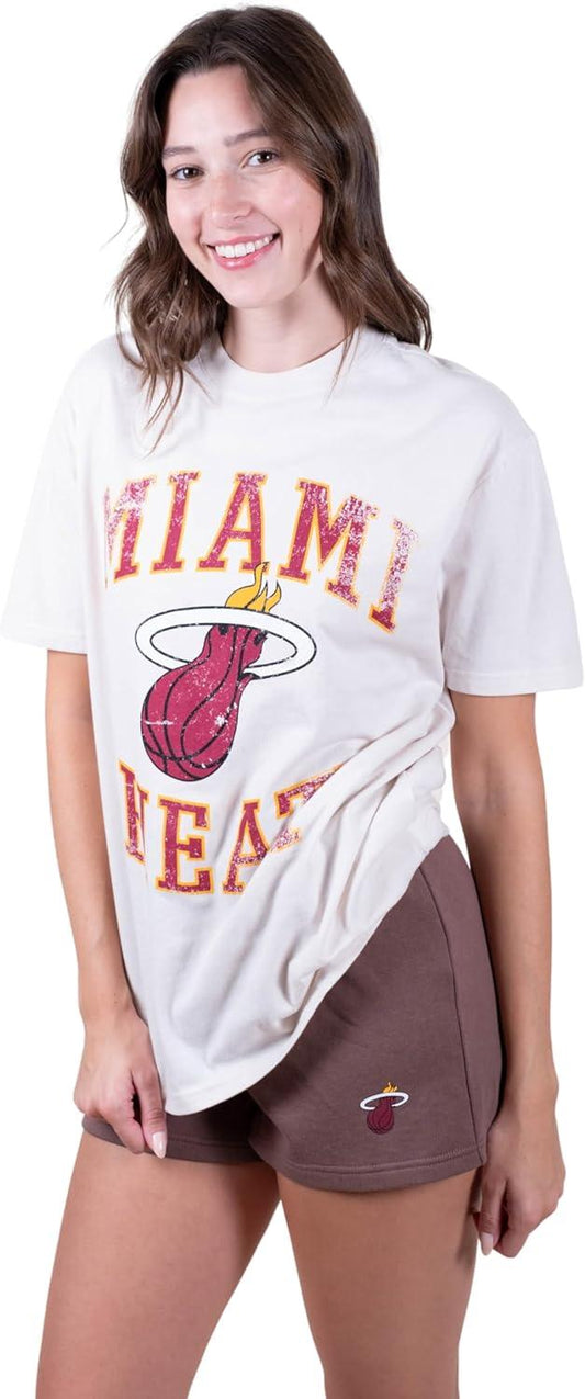 Ultra Game NBA Official Women's Super Soft T-Shirt & Short Set, Miami Heat, White|Miami Heat