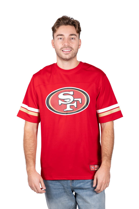 Ultra Game NFL San Francisco 49ers Mens Standard Jersey Crew Neck Mesh Stripe T-Shirt|San Francisco 49ers