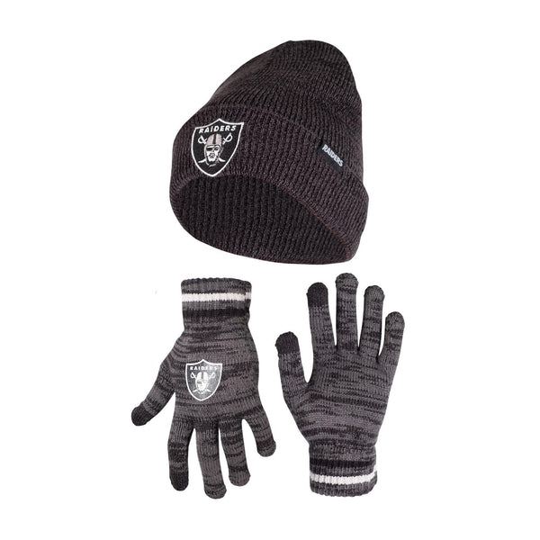 NFL Official Super Soft Marl Knit Winter Beanie Knit Hat with Extra Warm Touch Screen Gloves|Las Vegas Raiders