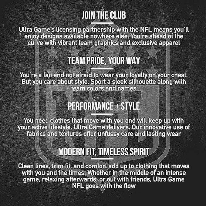 • NFL COLLECTION: Officially Licensed By The NFL (National Football League), Ultra Game NFL is a re-introduction to the classic NFL fan gear. Ultra Game products boast innovative design and fabric updates in fresh fits for today's stadium-goers that appeal to everyone.