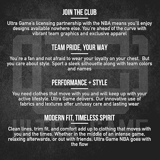 - ULTRA GAME NBA APPAREL: Officially Licensed by The NBA (National Basketball Association), Ultra Game NBA features innovative designs with forward thinking graphics and textures.