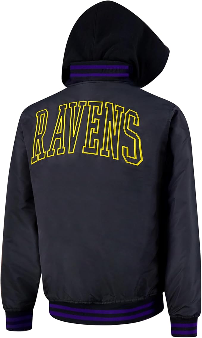 Ultra Game Mens NFL Official Bomber Satin Jacket Hoodie|Baltimore Ravens