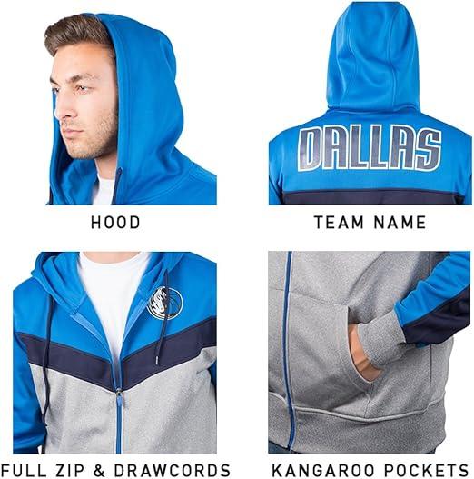 Ultra Game NBA Official Men’s Contrast Back Cut Full Zip Hoodie Sweatshirt - Unisex, Dallas Mavericks, Team Color|Dallas Mavericks
