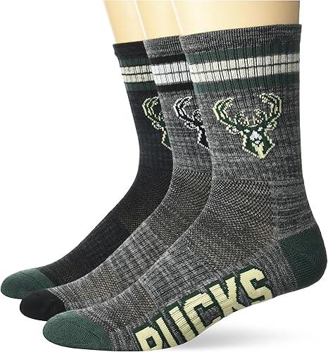 Ultra Game NBA Official Youth Athletic Cushioned Secure Fit Team Crew Socks, Milwaukee Bucks, Assorted, Y9-11
