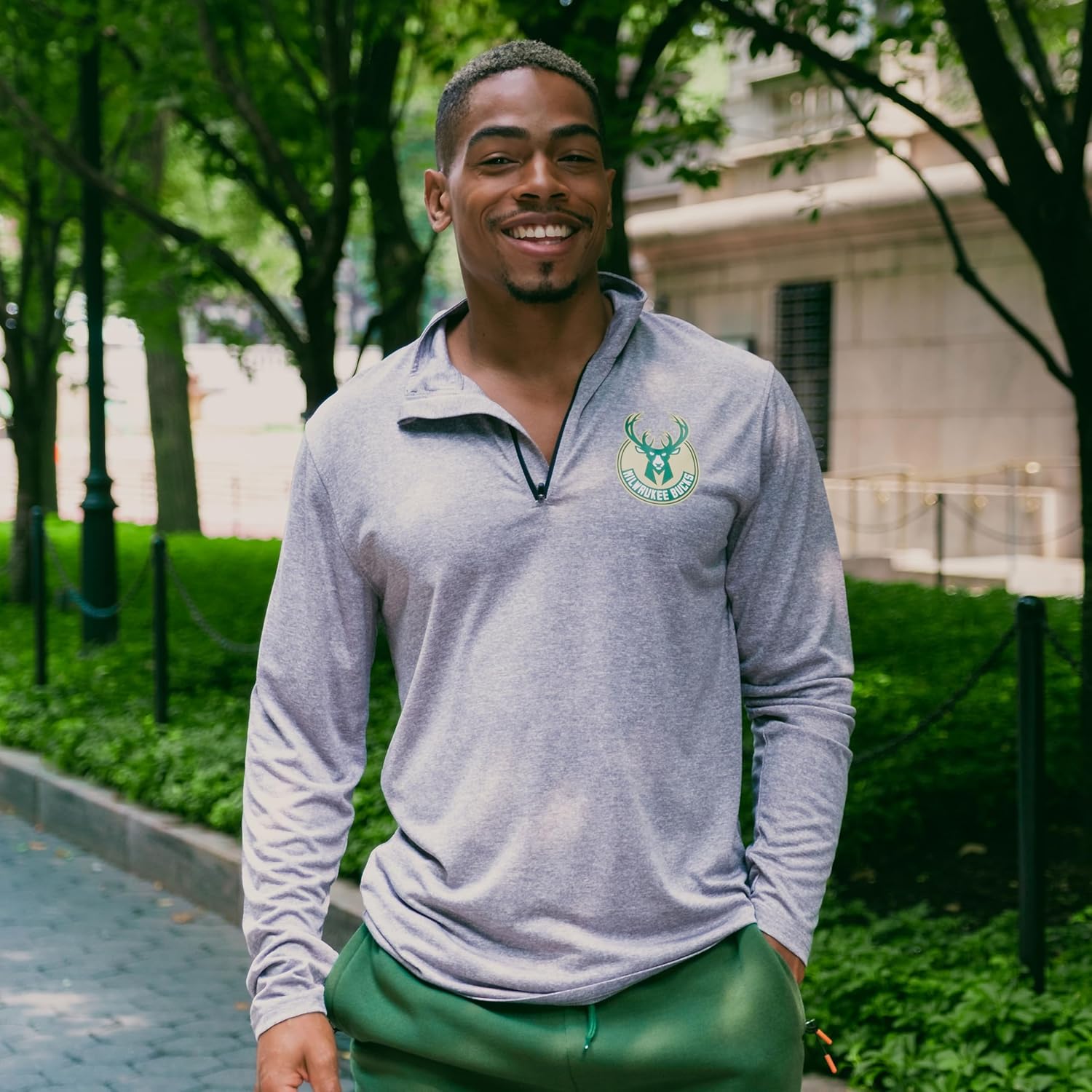 Ultra Game NBA Official Men’s Quarter Zip Long Sleeve Pullover T-Shirt - Unisex Milwaukee Bucks|Milwaukee Bucks