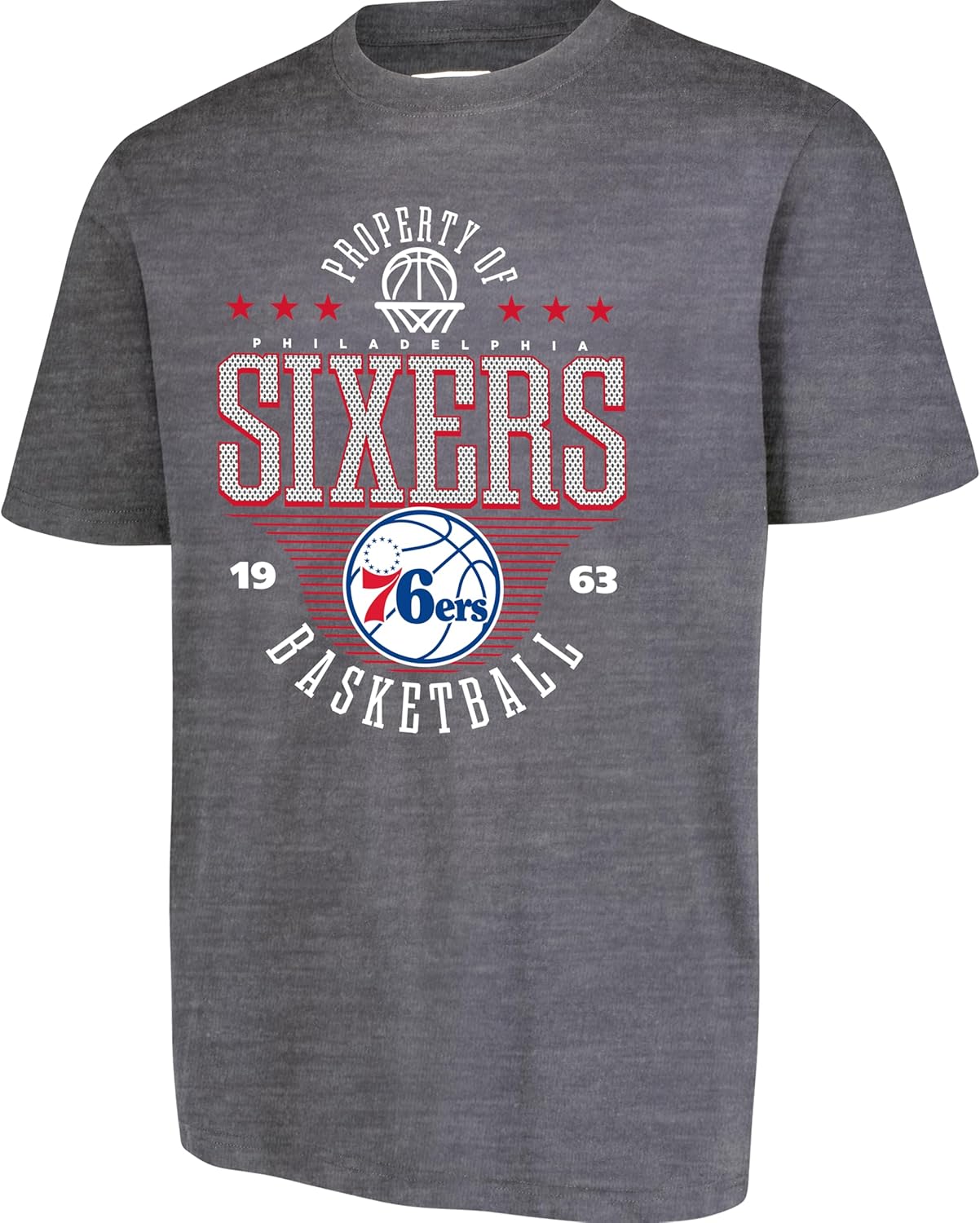 Ultra Game NBA Official Men's Standard Super Soft Mad Props T-Shirt, Philadelphia 76ers, Heather Charcoal|Philadelphia 76ers