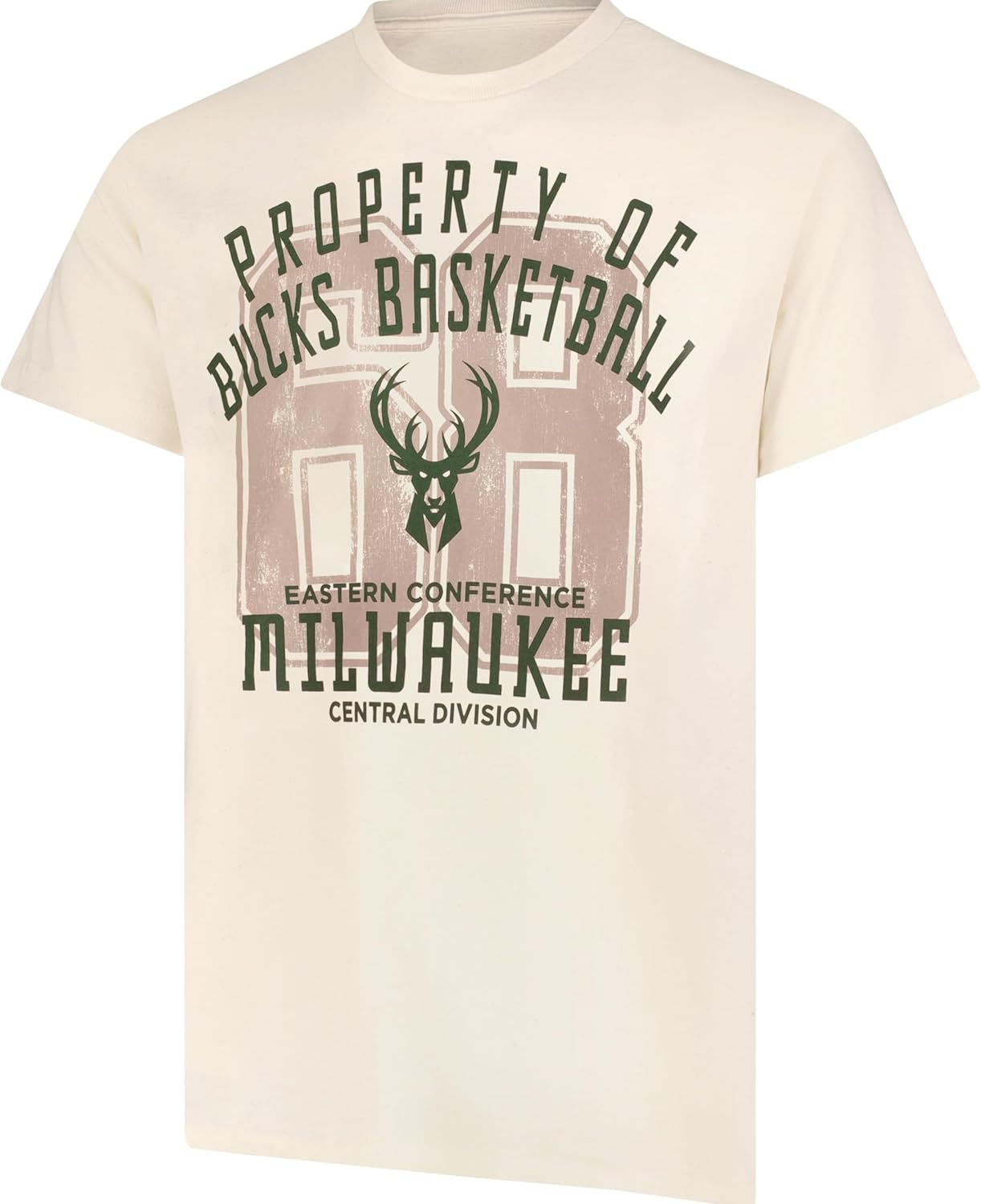 Ultra Game NBA Official Men's Standard Super Soft Nostalgic T-Shirt, Milwaukee Bucks,Cream|Milwaukee Bucks