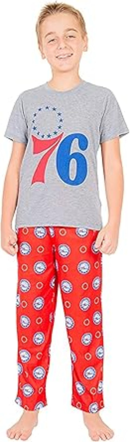 Ultra Game NBA Official Youth 2 Piece T-Shirt & Lounge Pants Pajama Set, Philadelphia 76ers, Boys Sizes|Philadelphia 76ers