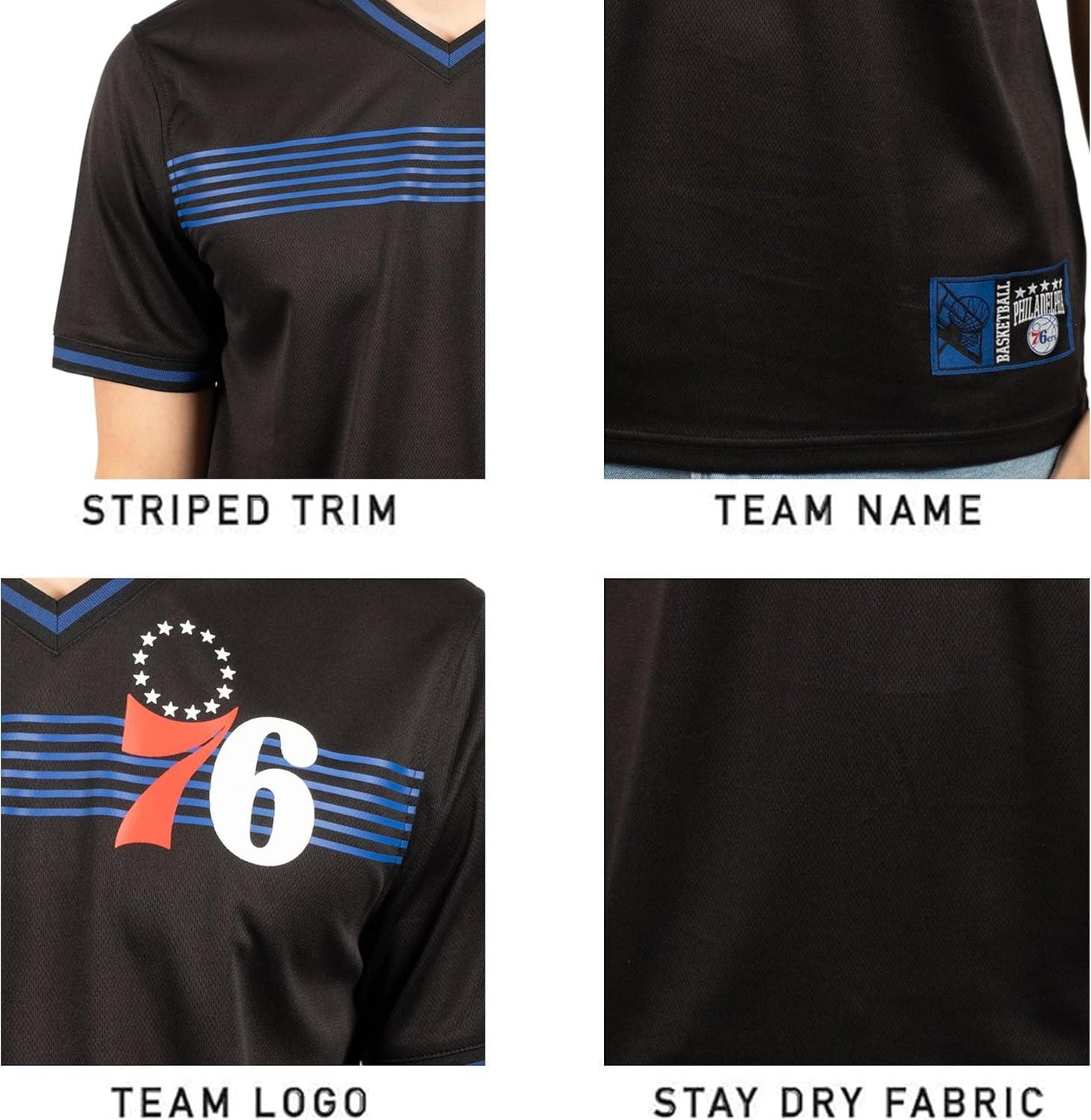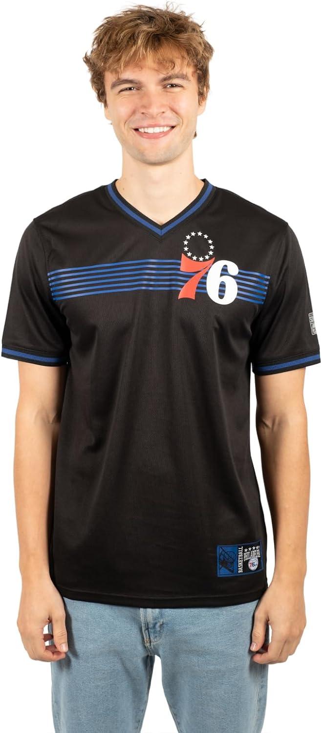 Ultra Game NBA Official Men’s Game Time Soft Mesh Short Sleeve Shirt, Philadelphia 76ers, Black|Philadelphia 76ers