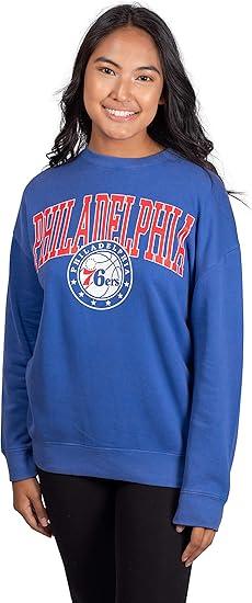 Ultra Game NBA Official Women's Extra Soft Fleece Distressed Oversized Pullover Sweatshirt, Philadelphia 76ers, Team Color|Philadelphia 76ers