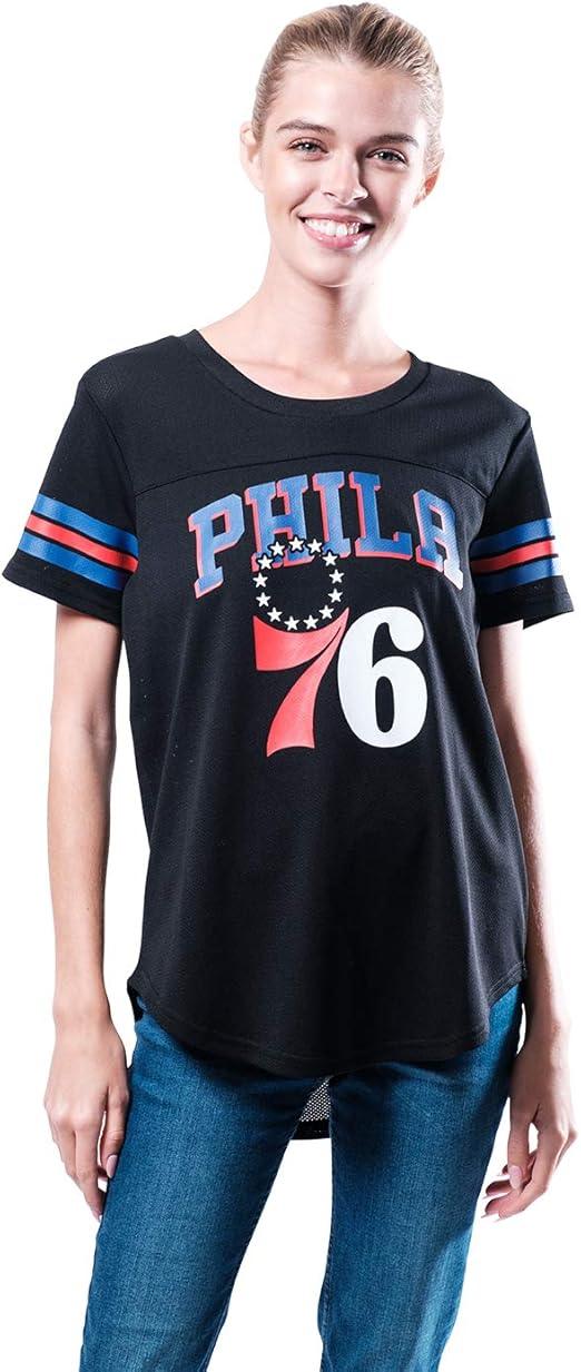 Ultra Game NBA Official Women's Soft Mesh T-Shirt, Philadelphia 76ers, Black|Philadelphia 76ers