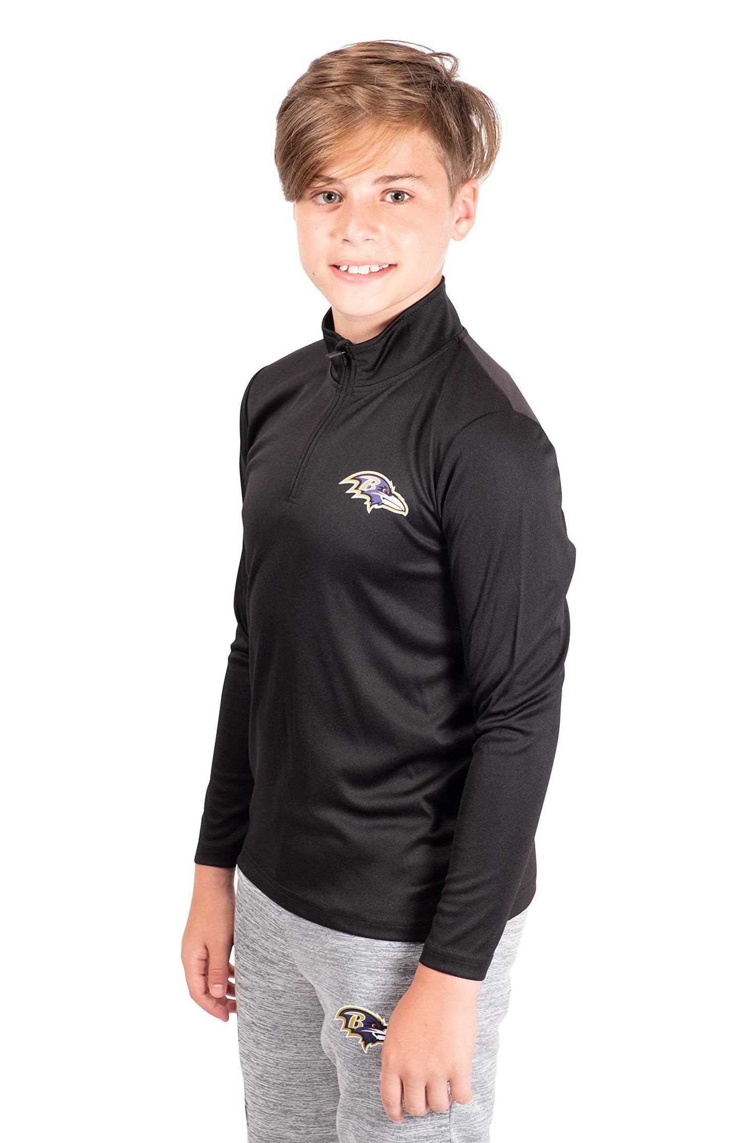 Ultra Game NFL Official Youth Super Soft Quarter Zip Long Sleeve T-Shirt Baltimore Ravens