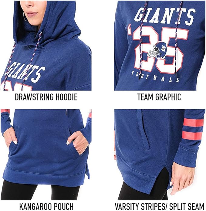 NFL Womens Soft French Terry Tunic Hoodie Pullover Sweatshirt