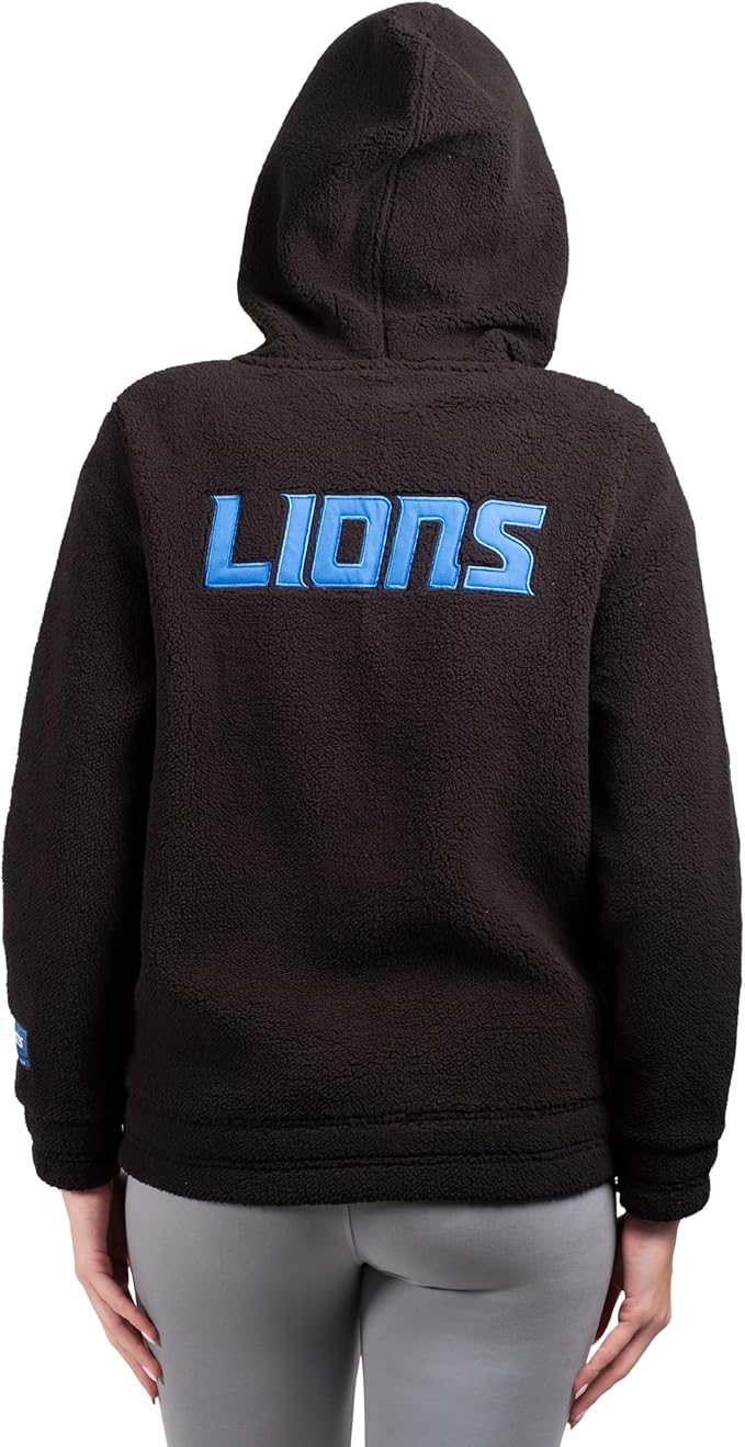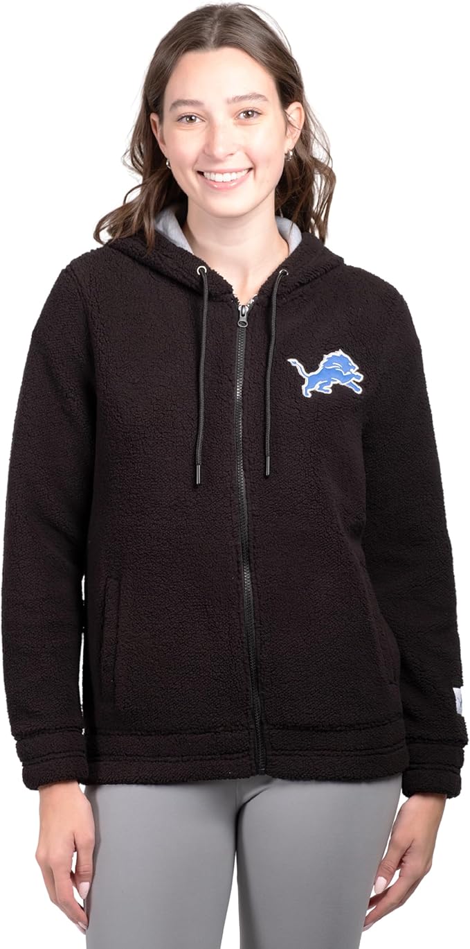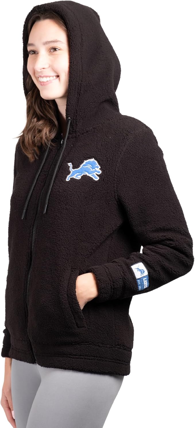 NFL Womens Full Zip Soft Sherpa Hoodie Sweatshirt Jacket|Detroit Lions
