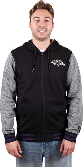 Ultra Game NFL Official Adults Ultimate Full Zip Varsity Hoodie Sweatshirt Jacket - Unisex, Baltimore Ravens, Team Color|Baltimore Ravens