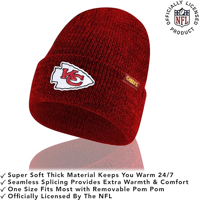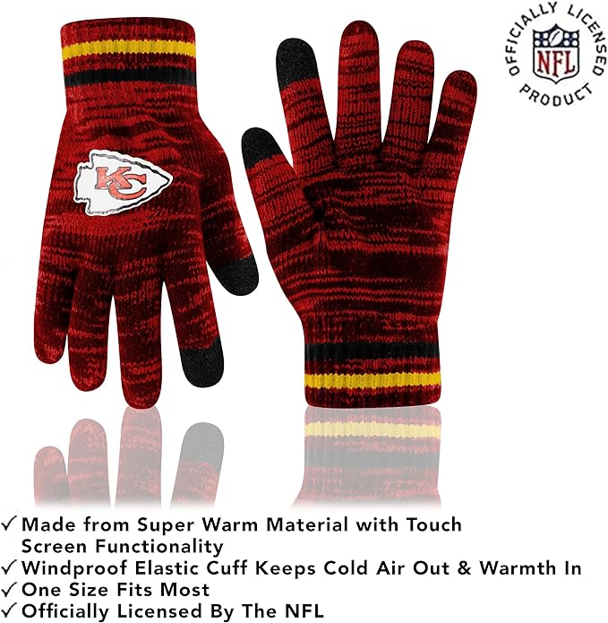 NFL Official Super Soft Marl Knit Winter Beanie Knit Hat with Extra Warm Touch Screen Gloves|Kansas City Chiefs