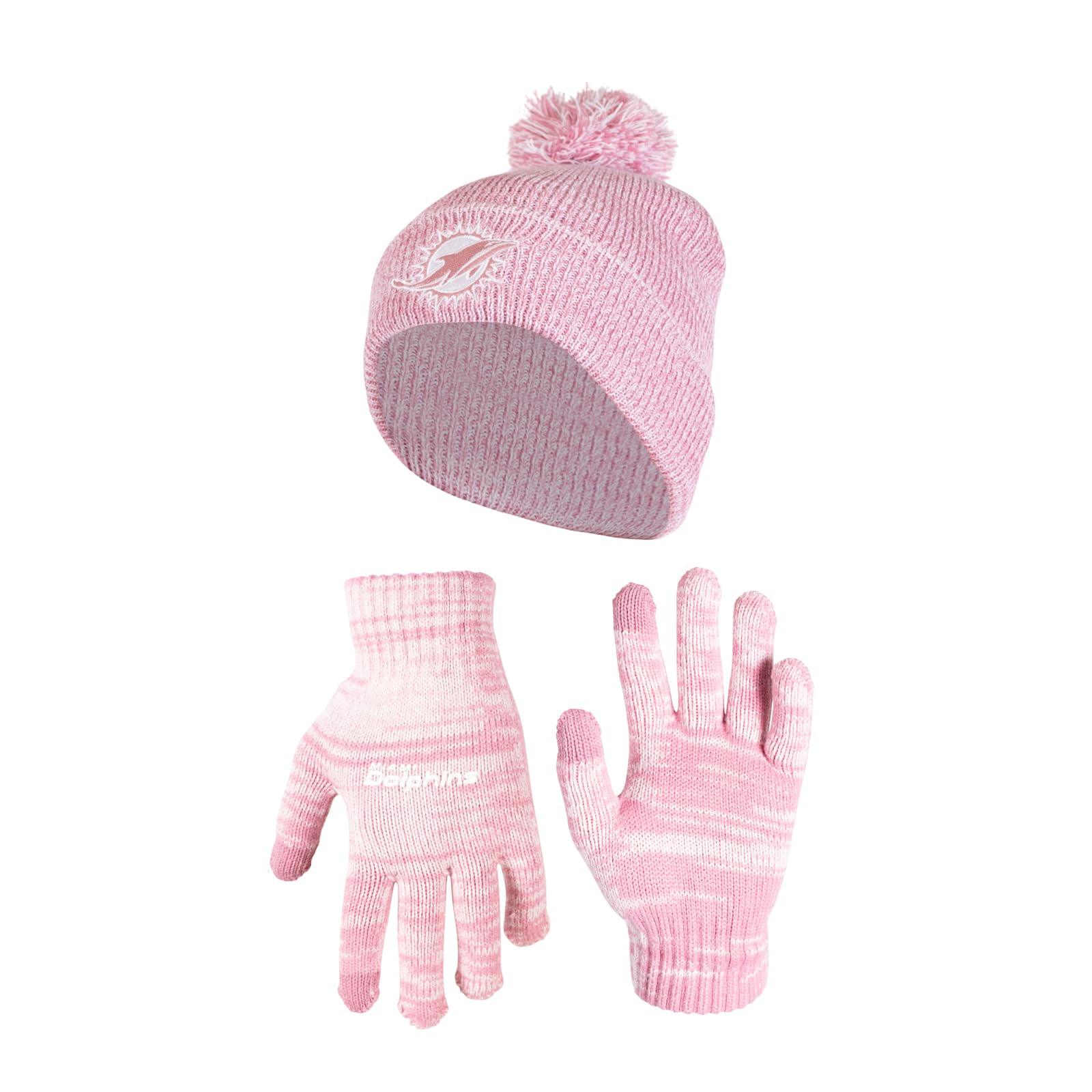 Ultra Game Adults Unisex NFL Official Super Soft Winter Beanie Knit Hat with Extra Warm Touch Screen Gloves|Miami Dolphins