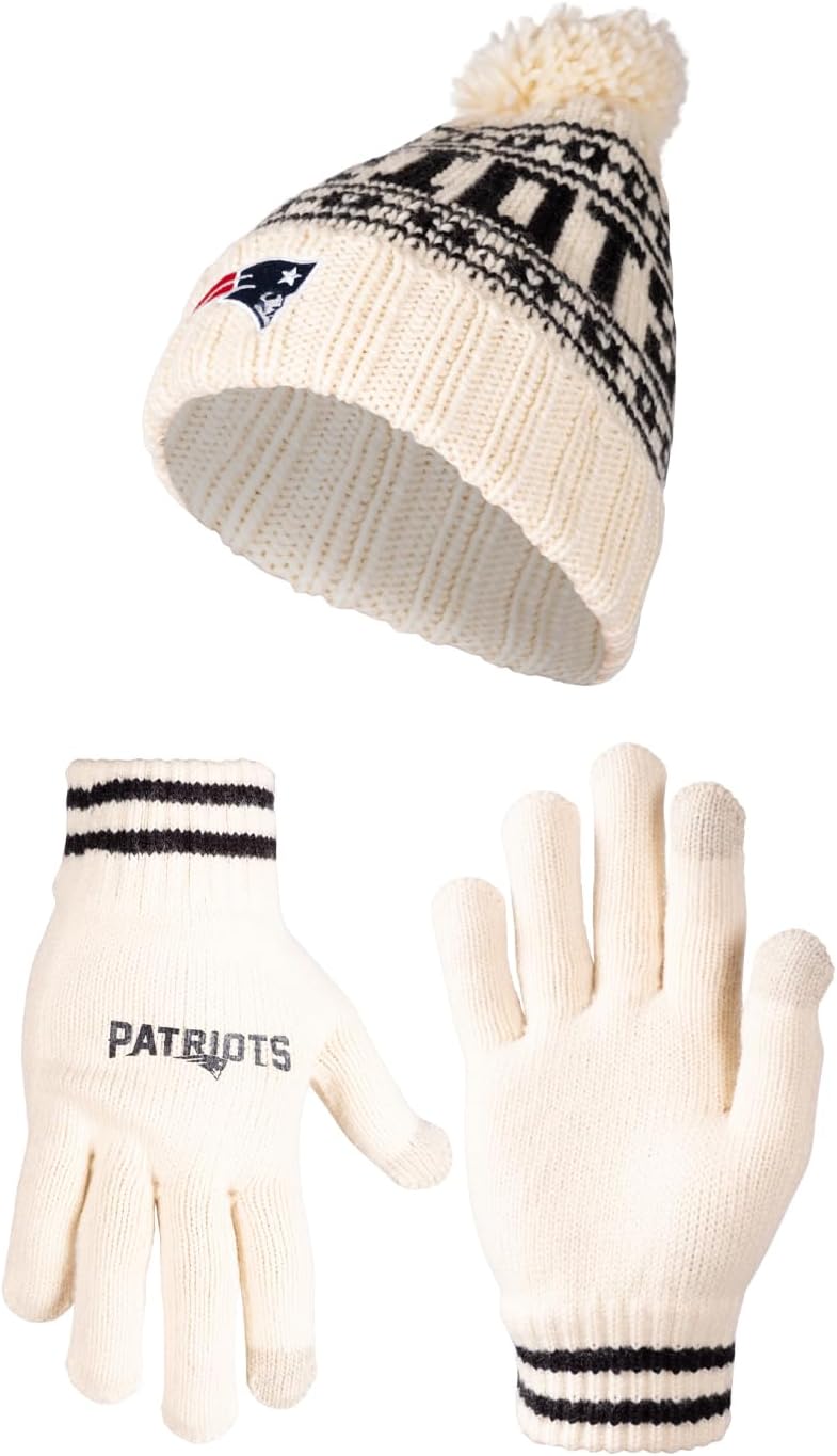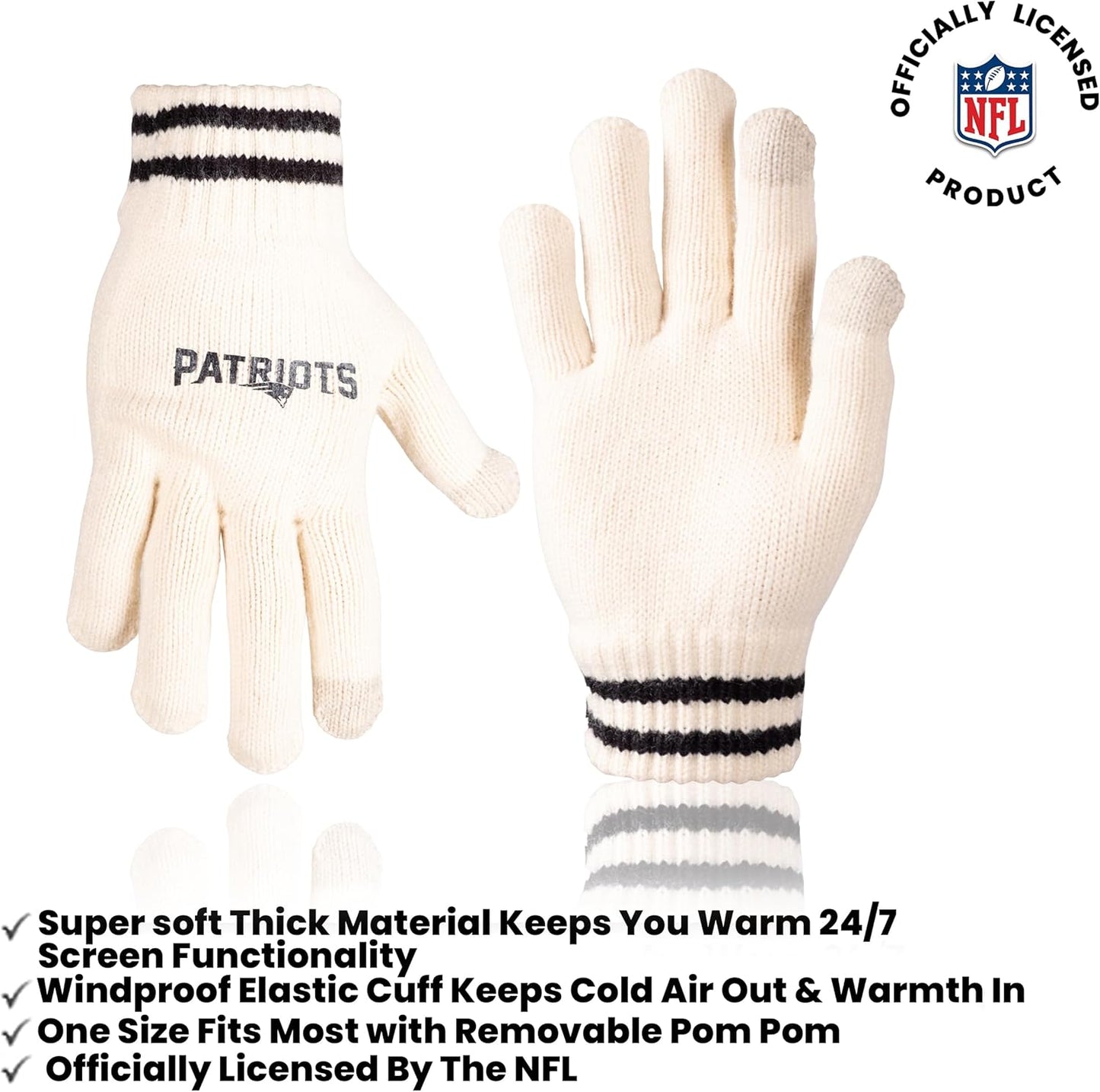 Ultra Game NFL Official Adults Super Soft Cable Knit Winter Beanie Knit Hat with Extra Warm Touch Screen Gloves, New England Patriots, One Size