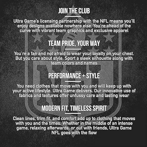 - NFL COLLECTION: Officially Licensed By The NFL (National Football League), Ultra Game NFL is a re-introduction to the classic NFL fan gear. Ultra Game products boast innovative design and fabric updates in fresh fits for today's stadium-goers that appeal to everyone.