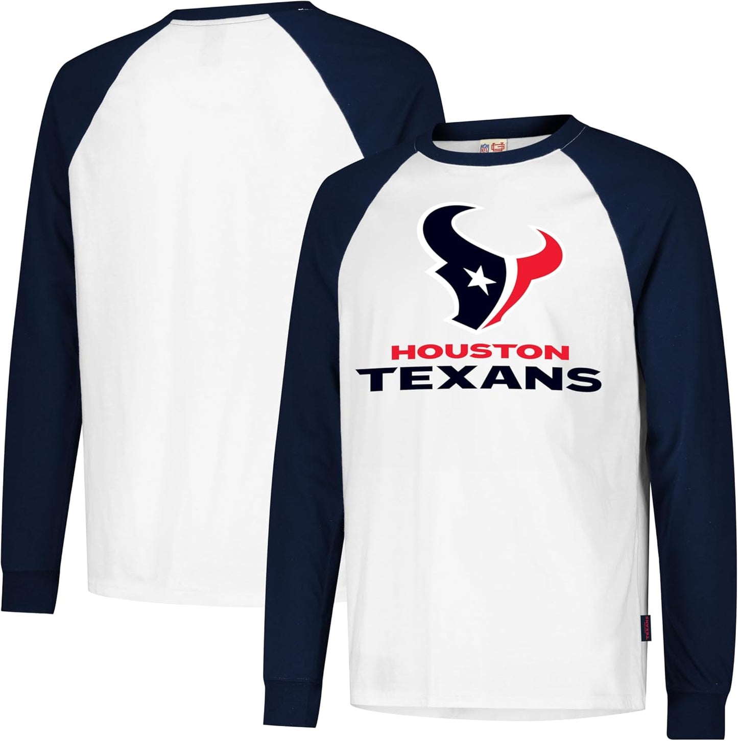 Ultra Game NFL Official Adults Super Soft Raglan Baseball Long Sleeve T-Shirt, Houston Texans, White|Houston Texans