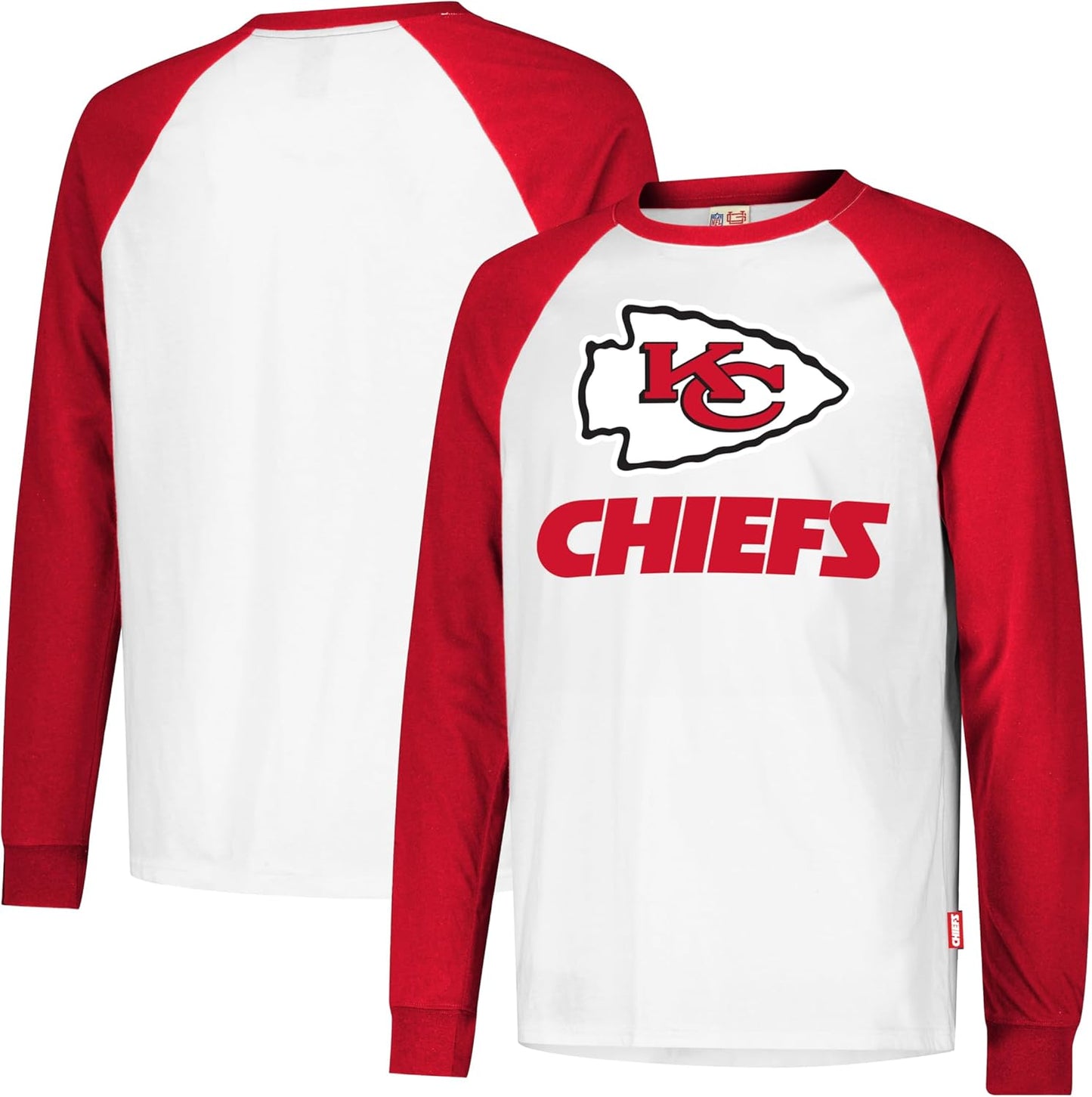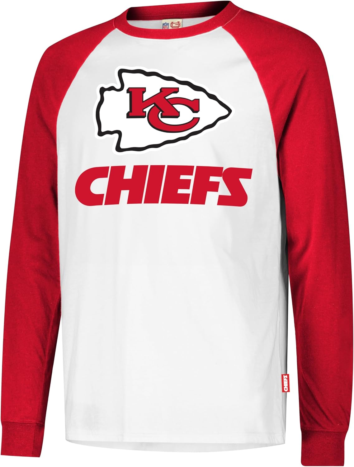 Ultra Game NFL Official Adults Super Soft Raglan Baseball Long Sleeve T-Shirt, Kansas City Chiefs, White|Kansas City Chiefs