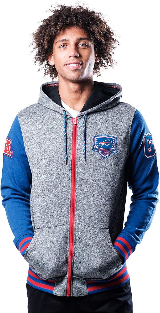 Ultra Game NFL Official Adults Super Soft Supreme Full Zip Varsity Hoodie Sweatshirt Jacket-Unisex, Buffalo Bills, Heather Gray