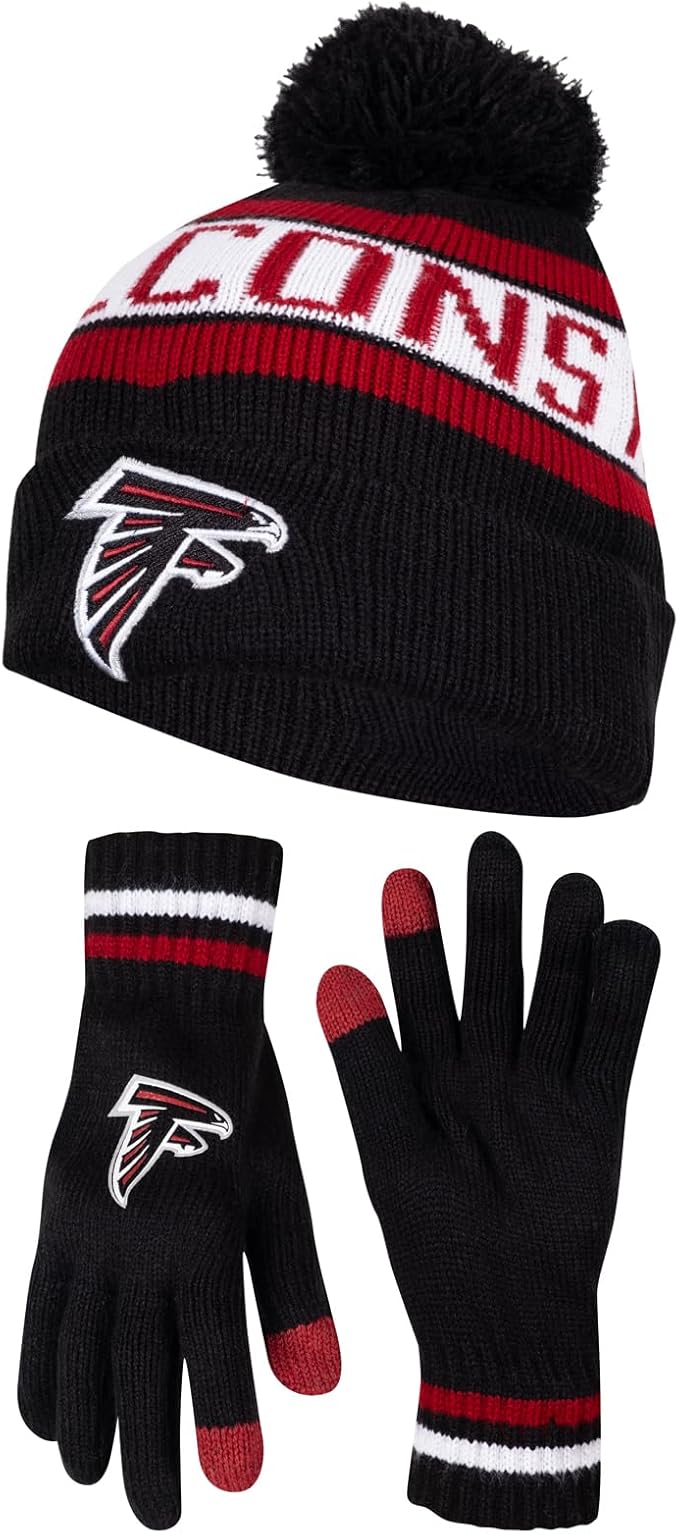 Ultra Game NFL Official Adults Unisex Super Soft Winter Beanie Knit Hat With Extra Warm Touch Screen Gloves, Atlanta Falcons, Team Color, 1SIZE