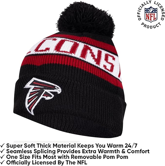 - STYLE AND DESIGN: Hat Includes fashionable pom-pom. Classic team Logo on the front. High-quality graphics of your favorite NFL team in official team colors.