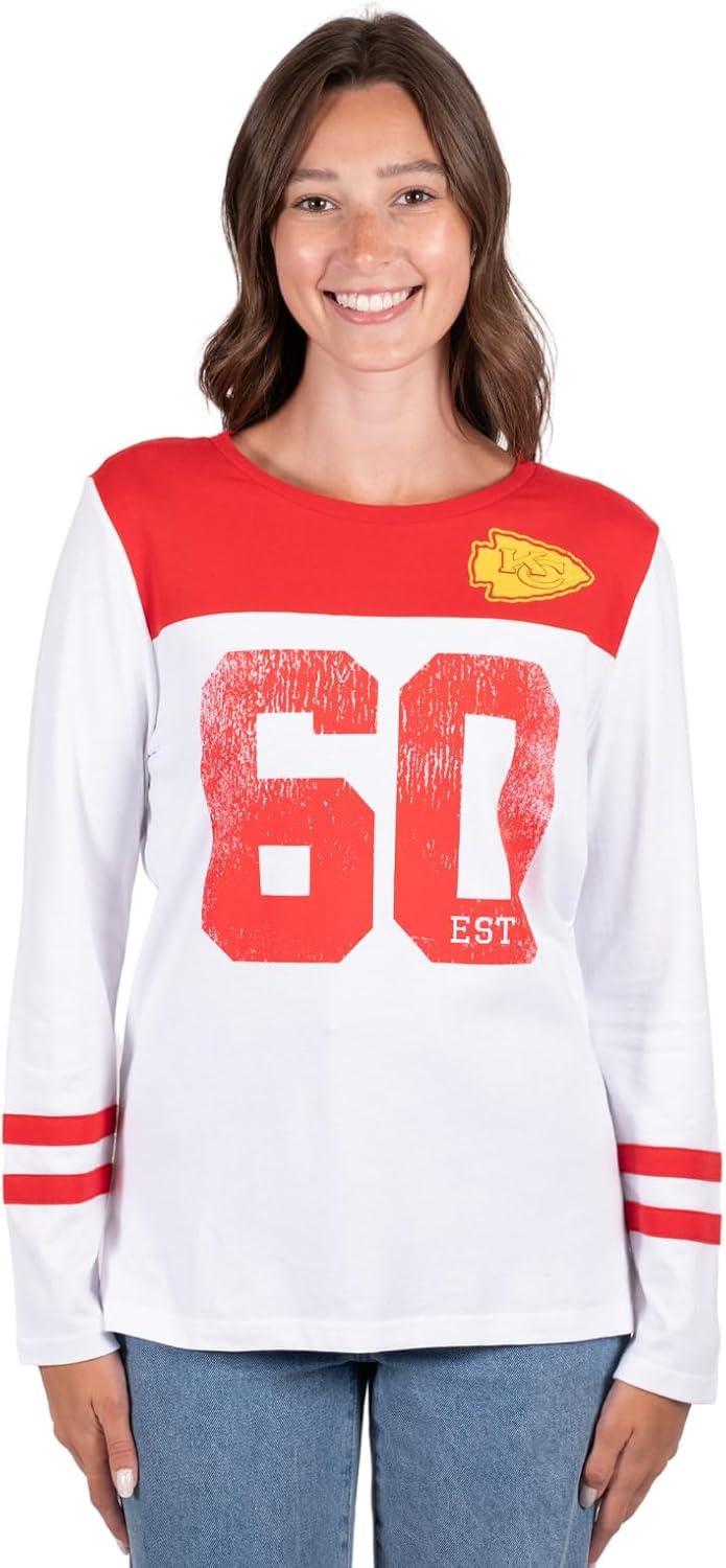 Ultra Game NFL Official Women's Super Soft Raglan Vintage Baseball T-Shirt, Kansas City Chiefs, White