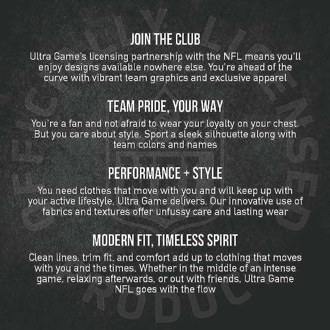 - NFL COLLECTION: Officially Licensed By The NFL (National Football League), Ultra Game NFL is a re-introduction to the classic NFL fan gear. Ultra Game products boast innovative design and fabric updates in fresh fits for today's stadium-goers that appeal to everyone.