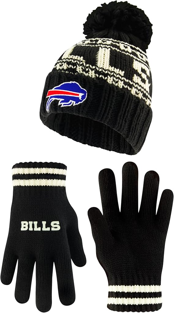 NFL Official Youth Super Soft Cable Knit Winter Beanie Knit Hat with Extra Warm Touch Screen Gloves|Buffalo Bills
