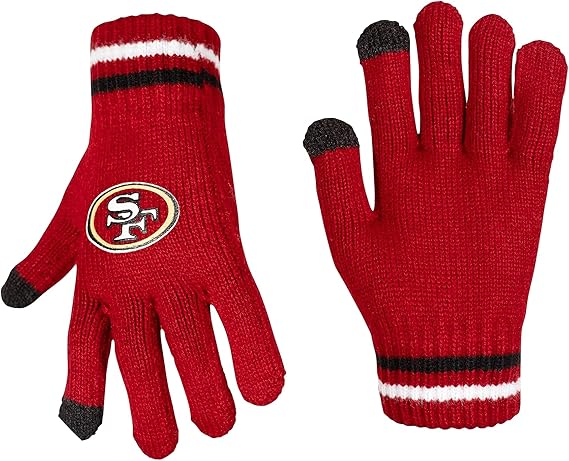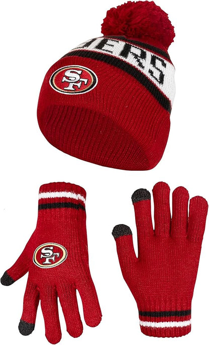 NFL Official Youth Super Soft Winter Beanie Knit Hat With Extra Warm Touch Screen Gloves|San Francisco 49ers