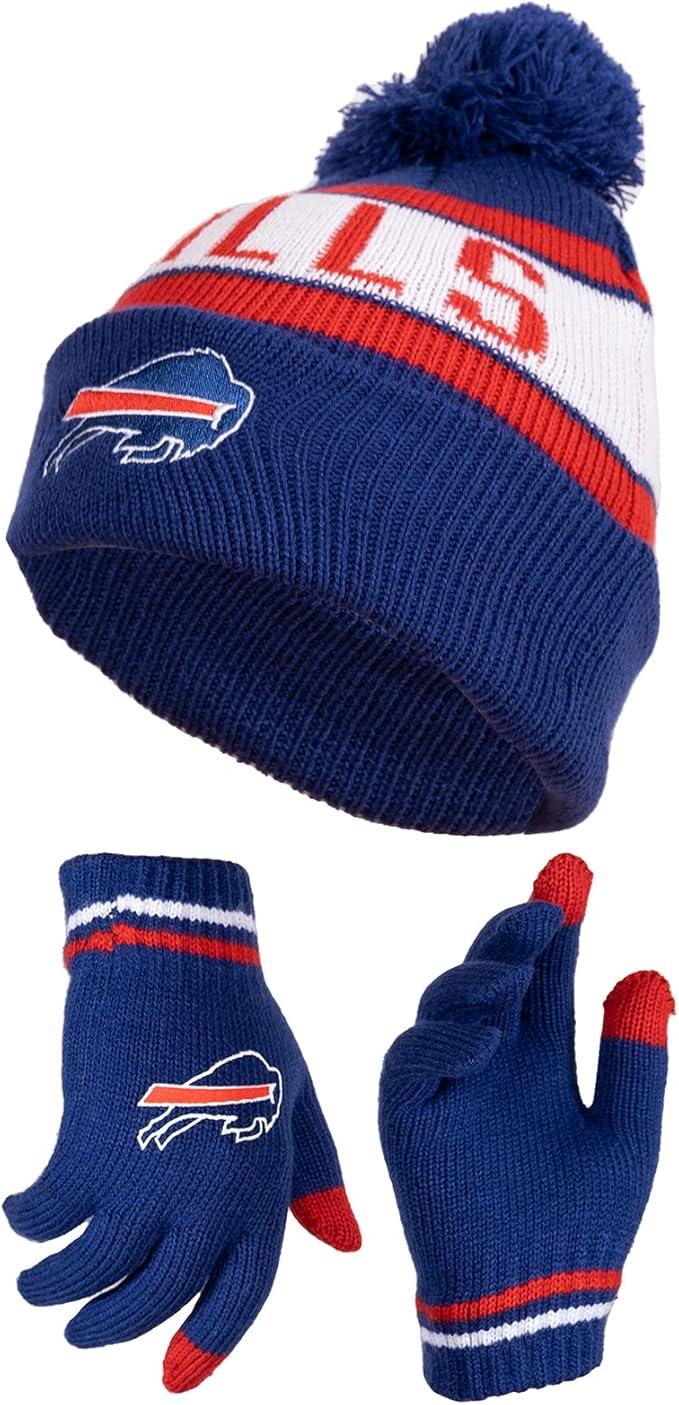 NFL Official Youth Super Soft Winter Beanie Knit Hat With Extra Warm Touch Screen Gloves|Buffalo Bills