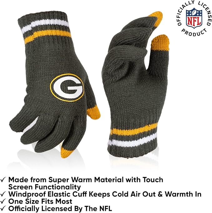 NFL Official Youth Super Soft Winter Beanie Knit Hat With Extra Warm Touch Screen Gloves|Green Bay Packers